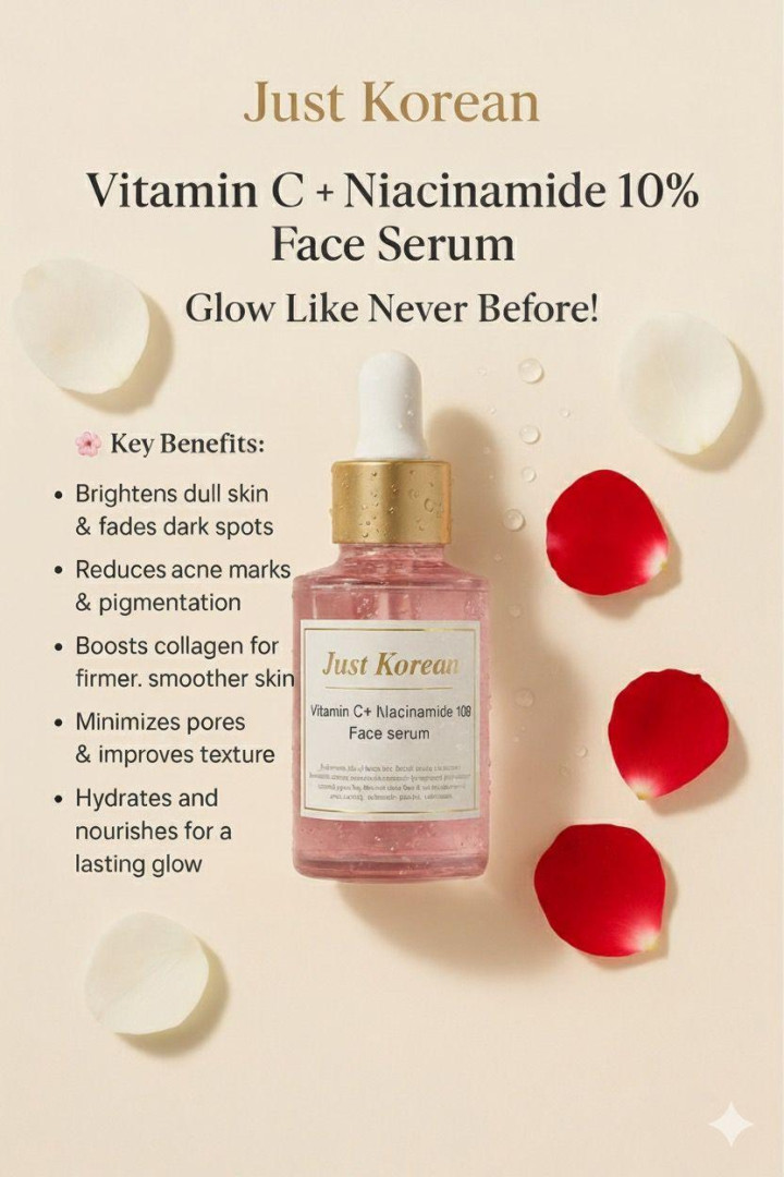 Experience the perfect blend of glow and clarity with Vitamin C + Niacinamide 10% Serum — your ultimate skincare solution for brighter, even-toned, and youthful-looking skin. This lightweight, fast-absorbing formula combines the antioxidant power of Vitamin C with the skin-renewing benefits of Niacinamide (Vitamin B3) to reduce dark spots, fade pigmentation, and improve overall skin texture. With consistent use, your skin looks smoother, healthier, and naturally radiant.